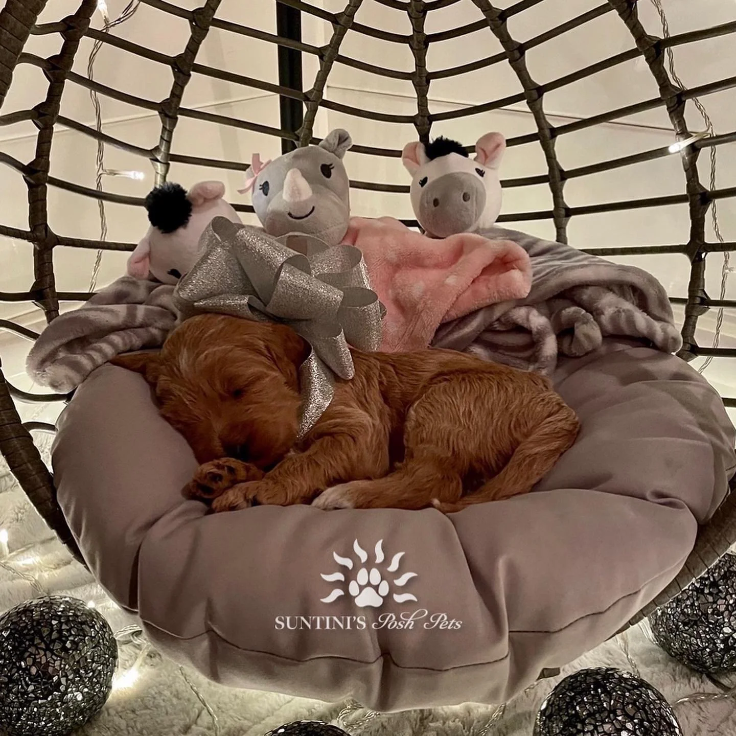 Imagine coming home to the wagging tail, joyful eyes, and loving cuddles of a Goldendoodle. Our furbabies are more than just pets; they are family, bringing endless happiness and companionship. Suntini’s Goldendoodles are not only adorable but they also go home with an array of amazing benefits to ensure they start their journey with you in the best possible way: