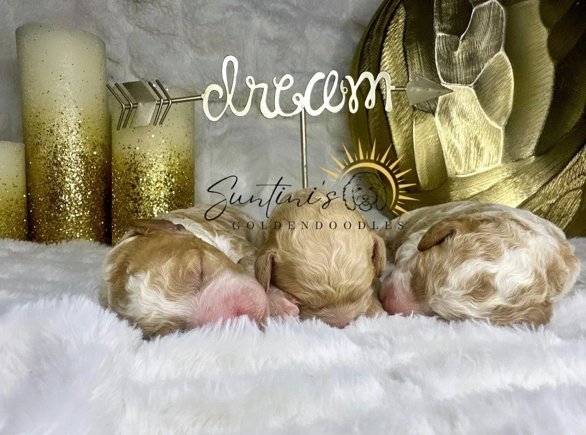 Welcome to the Suntini's Goldendoodle Family! Having secured your place by placing a Holding Fee for one of our precious furbabies, it's time to join us on Instagram and TikTok (@SuntinisGoldendoodles). Follow the journey from day zero to eight weeks old, and be part of the excitement as you watch your future loves grow and thrive. If you haven't already, join our extended Suntini’s Goldendoodles family today and don't miss out on the adorable moments and milestones!